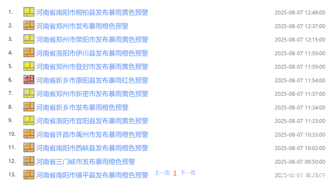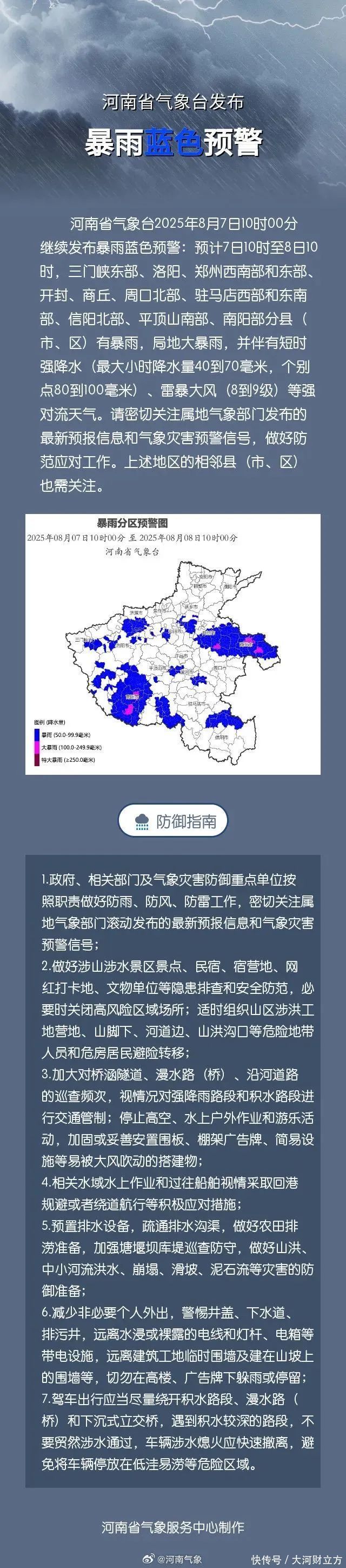 8月7日10时,河南省气象台继续发布暴雨蓝色预警:
